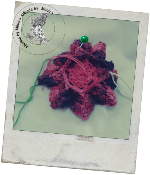 36 - Faça a mesma coisa em todas pétalas e arremate com ponto baixíssimo no 1º ponto baixíssimo feito.